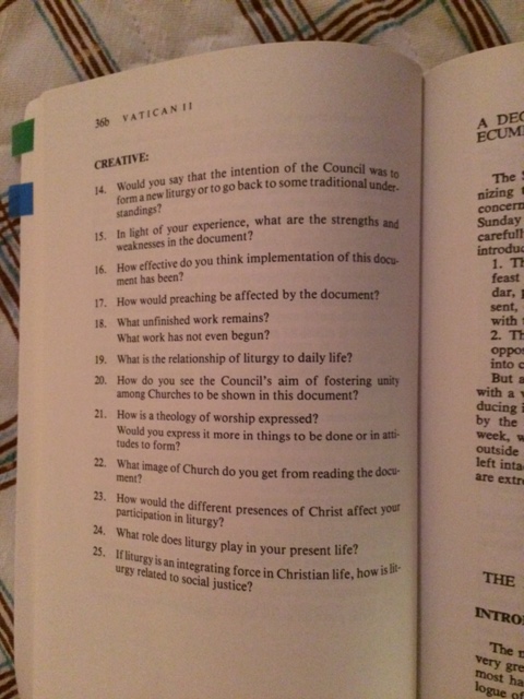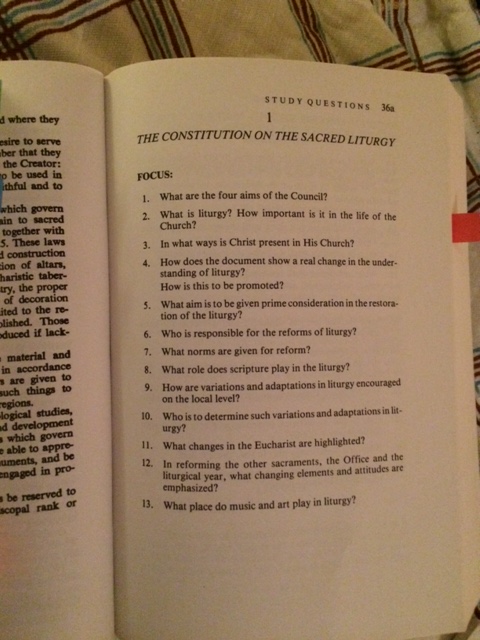 Professed members will discuss the Vatican II document on sacred liturgy, Sacrosanctum Concilium. The review questions can be accessed here and here.